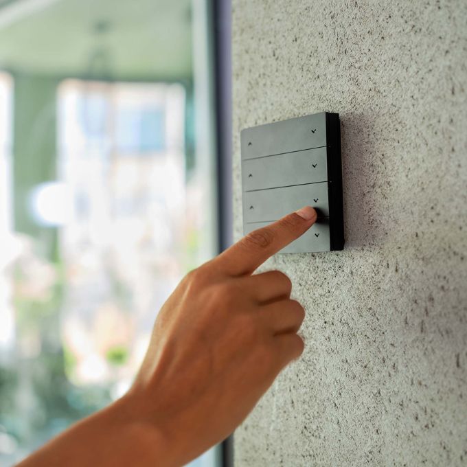 Pultelis tvirtinasi prie sienos. 4 kanalų nuotolinio valdymo pulteliu galite valdyti iki 4 vnt skirtingų automatinio valdymo gaminių